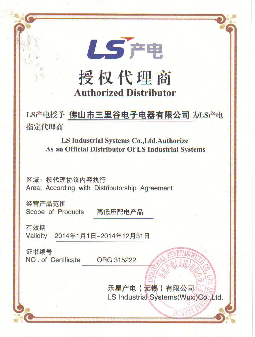 佛山市三里谷電子電器有限公司成立于2004年,是韓國LS產電華南地區核心代理商;同時專業代理、經銷日本富士、臺灣士林、法國海格電氣、上海康比利儀表、貴州長征、深圳泰永科技、西安森源等國內外知名品牌高、低壓元件及工業電氣的公司。以專業的技術支持,優質的售后服務,承接各項配電及自動化設備改造工程。 公司位于富繞、美麗的珠三角洲腹地—大廣佛經濟圈中心,業務遍及華南各大省份及地區。公...[詳細]